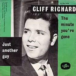 "The Minute You're Gone" provided Richard with his eighth UK number one single. It was also his first UK chart topper he had recorded without The Shadows backing.[1] However, at the corresponding time in the US, Epic curiously chose to release the soft ballad "Again" (another of his Nashville recorded tracks) as a single with "The Minute You're Gone" as the B-side. Although "Again" received a 4 star rating from Billboard, it had no chart success.[8][9]