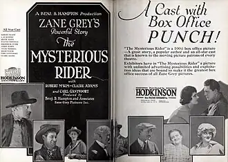 The Mysterious Rider is a 1921 American silent Western film directed by Benjamin B. Hampton and starring Robert McKim, Claire Adams and Carl Gantvoort.[1]