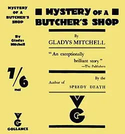 The Mystery of a Butcher's Shop is a 1929 mystery detective novel by the British writer Gladys Mitchell.[1] It is the second in her long-running series featuring the psychoanalyst and amateur detective Mrs Bradley.[2] It further established the reputation of the quick-witted Bradley who is some way ahead of the investigating police officers. Mitchell also employed a number of original touches that would continue during the series.[3]