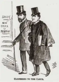 Caricature of Solomon (r) with Richard D'Oyly Carte, 1891