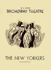 The New Yorkers is a musical with score by Cole Porter and book by Herbert Fields that satirizes New York City types during Prohibition, from high society matrons to con men, bootleggers, thieves, and prostitutes. The musical premiered on Broadway in 1930, based on a story by E. Ray Goetz and Peter Arno, cartoonist for The New Yorker magazine. Star Jimmy Durante contributed additional songs to feature his character. The original Broadway production received mostly positive reviews and ran for 168 performances.