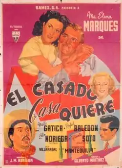 The Newlywed Wants a House (Spanish: El casado casa quiere) is a 1948 Mexican comedy film directed by Gilberto Martínez Solares and starring María Elena Marqués, Rafael Baledón and Malú Gatica.[1] [2] It was part of a scheme by RKO Pictures to remake some of their older works in Mexico. It is a remake of the 1931 film Too Many Cooks, itself based on an earlier play by Frank Craven. It was shot at the Churubusco Studios in Mexico City. The film's sets were designed by the art director Gunther Gerszo.