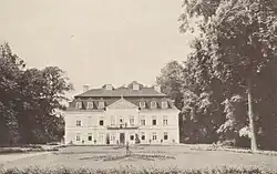 The Palace at Nakło, located in the village of Nakło, administrative district of Lelów; Częstochowa County, province of Silesia, is an example of neoclassical architecture. It was designed by the architect Jan Ferdynand Nax (1736-1810). It is a downsized and simplified reflection of the much larger and grander neoclassical palace at Szczekociny, six kilometers to the east. Nax, who was also a prominent economist of the time, constructed the two palaces simultaneously between 1770 and 1780.