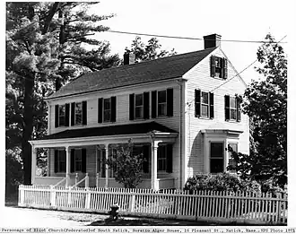 The Parsonage (also known as the Horatio Alger House) is a historic house at 16 Pleasant Street in Natick, Massachusetts. It was designated a National Historic Landmark for its association with Horatio Alger (1832-1899), a well-known writer of popular juvenile fiction.