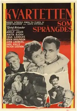 The Quartet That Split Up (Swedish: Kvartetten som sprängdes) is a 1950 Swedish comedy film directed by Gustaf Molander and starring Adolf Jahr, Anita Björk, Inga Landgré and Victor Sjöström.[1] It is an adaptation of the 1924 novel of the same title by Birger Sjöberg, which had previously been made into a 1936 film.[2] It was shot at the Råsunda Studios in Stockholm. The film's sets were designed by the art director Nils Svenwall.