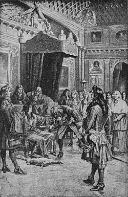 It revolves around Amory de Catinat, a Huguenot guardsman of Louis XIV, and Amos Green, an American who comes to visit France. Major themes include Louis XIV's marriage to Madame de Maintenon, retirement from court of Madame de Montespan, the revoking of the Edict of Nantes (1685) and the subsequent emigration of the Huguenot de Catinats to America.