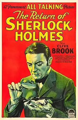 The Return of Sherlock Holmes is a 1929 American Pre-Code mystery film directed by Basil Dean and written by Arthur Conan Doyle, Basil Dean and Garrett Fort. The film shares its title with the third volume of the Sherlock Holmes stories, The Return of Sherlock Holmes by Arthur Conan Doyle. The film stars Clive Brook, H. Reeves-Smith, Betty Lawford, Charles Hay and Phillips Holmes. The film was released October 29, 1929, by Paramount Pictures. A copy is held at the Library of Congress.[1] It was the first sound film to feature Sherlock Holmes. In 2025, the film entered the public domain in the United States.[2]