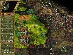 The Settlers IV is a real-time strategy game with city-building elements,[9][10] controlled via a point and click interface. The general gameplay and game mechanics are very similar to The Settlers III,[10][11][12][13] and the primary goal on most maps is to build a settlement with a functioning economy, producing sufficient military and/or specialist units so as to conquer rival territories.[12] To achieve this end, the player must engage in economic micromanagement, construct buildings, and generate resources.[14]