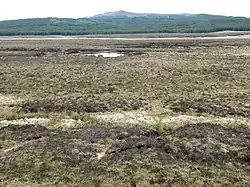 The West Highland Line, 3¾ miles (6 km) from Rannoch railway station, cut through the Soldiers' Trenches that are now visible only as Sphagnum moss filled linear structures on the moorland.[5] The drains ran from Abhainn Duibhe to the railway on the south-eastern side of the moor.[6]