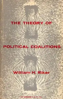 The Theory of Political Coalitions is an academic book on positive political theory written by the American political scientist William H. Riker and published in 1962. It uses game theory to formalize political theory. In it, Riker deduces the size principle. On its postulates, politicians are proved to form winning, minimal-size coalitions.[1] The work runs contrary to a previous theory by Anthony Downs that they try to maximize their respective votes. Riker supposes that attracting more votes requires resources and that politicians run to win. A rational politician tries to form a coalition that is as large as necessary to win but not larger.[2]