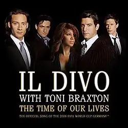 "The Time of Our Lives" is a song recorded by multinational operatic pop quartet Il Divo and American singer Toni Braxton to serve as the official song of the 2006 FIFA World Cup held in Germany. Written by Jörgen Elofsson and produced by Steve Mac, the song appears on the compilation album Voices from the FIFA World Cup (2006) and on the 2006 European reissue of Braxton's sixth studio album, Libra.