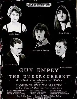 The Undercurrent was a 1919 American silent directed by Wilfrid North, produced by Guy Empey, distributed by Select Pictures. It is based on a story by Arthur Guy Empey and though fictional, is considered a sequel to Over the Top which was a 1918 movie loosely based on his autobiographical book of the same name about his own experiences in the British Army in World War I.[1] The New York City premier was held at the Capitol Theatre and was attended by General John J. Pershing who was in New York City for the International Trade Conference of 1919.[2]