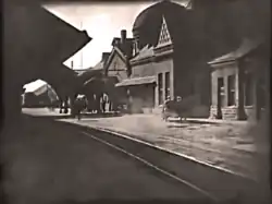 Bernard Miller is the President of the transcontinental railroad. Twelve minutes into the movie, Mr. and Mrs. Miller leave on a pre-planned trip. They departed from a train depot, which the movie frame allows us to identify the depot as the old Atchison, Topeka, and Santa Fe Railway passenger station in La Grande California. Identification of the train station is possible by examining the background of the movie frame, viewing the Moorish architecture dome, and comparing the structure against the La Grande images on Wikipedia.[23] The Santa Fe opened La Grande Station on July 29, 1893.[24] The movie was completed in 1923, making the station 30 years old at the time of the filming.