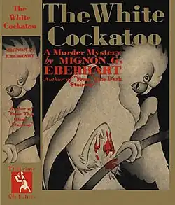 4. ^ a b Eberhart, Mignon G. The White Cockatoo. The Bodley Head, 1937 (reprint, dust jacket front flap).