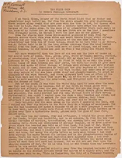 "The White Ship" is a horror short story by American writer H. P. Lovecraft. It was first published in The United Amateur (Volume 19) #2, November 1919, and later appeared in the March 1927 issue of Weird Tales.[1][2]