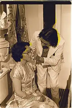 Playwright Frank Chin as "Fred Eng" comforts his mother Hyacinth in a scene from the AATW production in San Francisco 1978