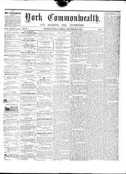 10. ^ "The York Commonwealth - pg. 1". ink.ourdigitalworld.org. Retrieved 2020-02-08.