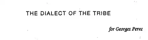 The Dialect of the Tribe is a nine-page humorous short story by Harry Mathews (1930–2017), an American francophone writer, close to Georges Perec, and who joined the Oulipo group in 1973.