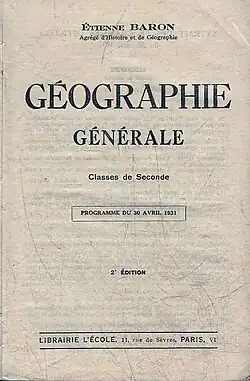 - ^ Baron, Étienne (1937). Géographie générale : Classe de seconde. Programme du 30 avril 1931 [General geography: Second year of high school. Curriculum dated April 30, 1931.] (in French). Paris: Magnard.