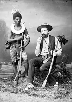 Leaving from Tagota at the mouth of the Fly [River], Botherby traveled upriver for more than 500 miles [...] to finally reach the unexplored region he sought, a set of valleys located — using the toponymy of the time — between the Kaiserin Augusta, the Victor Emmanuel ranges,[N 4] and the extension of the Musgrave range.[22]