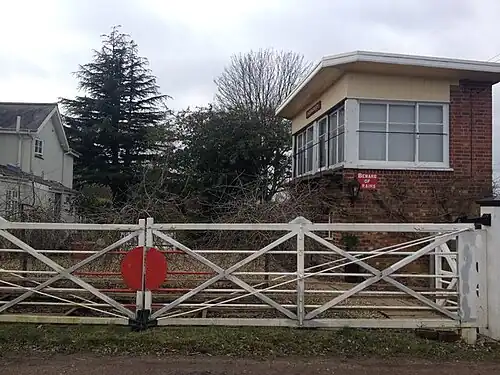 ![]() The former signal box and level crossing gates in 2017 | |||||