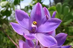 Thelymitra purpurata, commonly called the wallum sun orchid,[2] is a species of orchid that is endemic to eastern Australia. It has up to ten purplish flowers with long, finger-like glands on the top of the column and flowers earlier in the season than most other thelymitras.