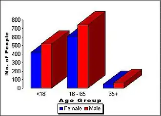 Statistical records as of June 2006 showed that the number of boys (aged below 18) was 520. The adult male population (18-65) was 745, and the male senior citizens (65+) were 64. Therefore, the male population of the island was 1,329.
