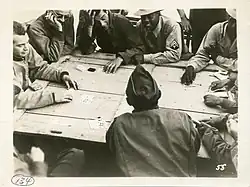 Cast members of the touring company of This Is The Army play blackjack in Italy (May 1944)