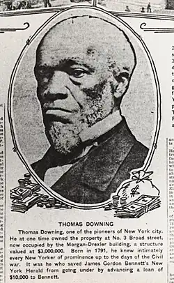 3. ^ "Thomas Downing - NYC Oyster King & Abolitionist". Fishers Island Oyster Farm. February 22, 2021. Retrieved June 7, 2022.