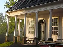 In 1792 the property was bought by Thomas Erichsen (1752-1795), a merchant from Flensburg in Schleswig-Holstein. He had become one of the richest men in Bergen. Between 1793 and his death in 1795, he built the main building in Louis XVI style and also built a magnificent garden with an 800 meter long avenue down to Hop harbor. The lower section of the avenue consists of ash trees, while further up it is linden trees.[7]