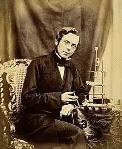 Thomas Frederick Hardwich held the positions of Curator of laboratory (1850-1854); Demonstrator of Chemistry (1851-1854); and, Lecturer of Photography (1857-1860).[3] He was elected to membership of the Photographic Society (later Royal Photographic Society on 1 March 1855 and was an active participant in the Society's activities until his abrupt resignation in 1861.[4] He was also a member of the Photographic Society Club, a group of members of the Photographic Society, which formed to exchange photographs.[5] He was also an honorary member of the Photographic Society of Bombay.[6] Hardwich also formulated a popular collodion that was sold extensively and was used by the Collodion Committee of the Photographic Society.[7] He was a member of the Society's important Fading Committee which was convened at the request of Prince Albert to look at the causes and possible means of preventing the fading of photographic prints.[8]