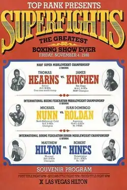 Thomas Hearns vs. James Kinchen was a professional boxing match contested on November 4, 1988, for the NABF and the inaugural WBO super middleweight titles.[5]