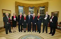 Clarence Thomas (last on right) accepting the 2002 National Humanities Medal on Sowell's behalf