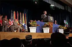 9. ^ "President George W. Bush announces his Lessons of Liberty initiative at Thomas S. Wootton High School in Rockville, MD. The initiative is an opportunity for American students to learn more about our country and its values, as well as the people that have been called upon to defend its freedom. White House photo by Tina Hager". November 1, 2001. Retrieved November 1, 2017.