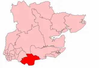 • The Borough of Thurrock wards of Aveley, Belhus, Chadwell St Mary, East Tilbury, Grays Thurrock North, Grays Thurrock Town, Little Thurrock, Ockendon, Stifford, Tilbury, and West Thurrock.[9][10]