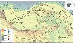Map of various volcanoes found underneath the West Antarctic Ice Sheet[40]