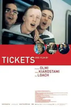 Tickets is a 2005 comedy-drama anthology film directed by Ermanno Olmi, Abbas Kiarostami and Ken Loach. It was written by Ermanno Olmi, Abbas Kiarostami, and Paul Laverty. Three interconnected stories unfold on a train journey from Innsbruck to Rome.