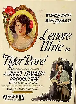Tiger Rose is a 1923 American silent romantic adventure film produced and distributed by the Warner Brothers. It is based on Willard Mack's 1917 Broadway play starring Lenore Ulric. Ulric reprises her role in this silent film version. The story was filmed again in 1929, as Tiger Rose by George Fitzmaurice.[2][3][4] The SilentEra database lists this film as surviving.[5]