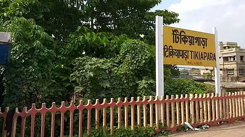 Tikiapara is a railway station on the Howrah–Kharagpur line. It is located in Tikiapara, Howrah in the Indian state of West Bengal.