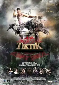 Tiktik: The Aswang Chronicles is a 2012 Filipino action comedy horror adventure film written and directed by Erik Matti. The film stars Dingdong Dantes (who co-produced the film under AgostoDos Pictures), Lovi Poe, Joey Marquez, Janice de Belen and Roi Vinzon. The film is the first full-length Filipino film entirely shot on green screen chroma key. The film received mixed to positive reviews from critics who praised its visual effects while criticizing the plot. Tiktik: The Aswang Chronicles was followed up with a sequel Kubot: The Aswang Chronicles 2 in 2014, which was also directed by Matti.
