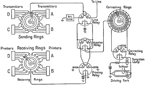 Time-division multiplexing was first developed for applications in telegraphy to route multiple transmissions simultaneously over a single transmission line. In the 1870s, Émile Baudot developed a time-multiplexing system of multiple Hughes telegraph machines.