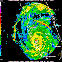 • 2 p.m. AST (1800 UTC) – Hurricane Jeanne passes near Grand Bahama with 120 mph (190 km/h) winds.[13]