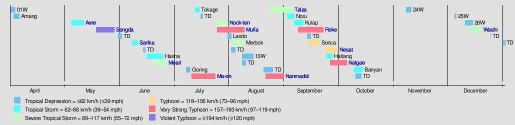- 0600 UTC - Typhoon Songda dissipates in the same area where Aere dissipates.[8]