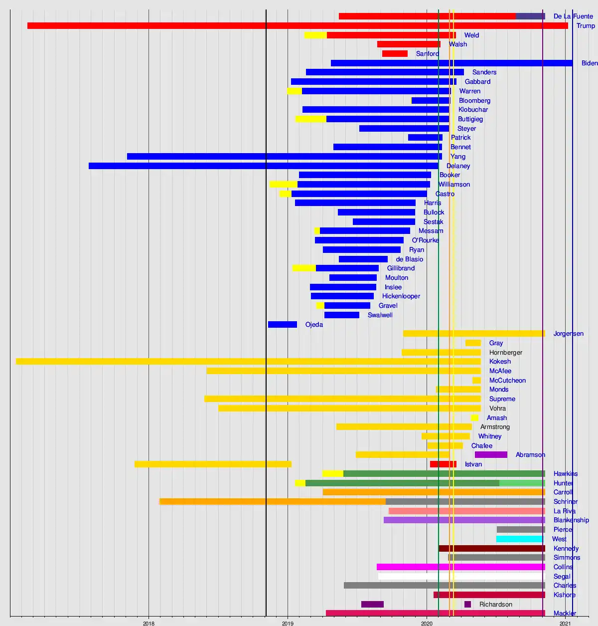 - January 13: Struggling financially, and facing the prospect of being forced off the campaign trail to attend the first impeachment trial of Donald Trump in his capacity as a senator, Booker drops out of the Democratic primary.[6]