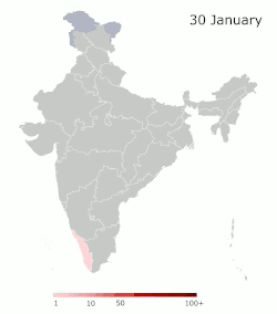 - On 3 February, the third case was reported in Kerala's Kasaragod district in a student who had returned from Wuhan, China.[4]