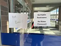 The lack of water on January 8 lead to Lowe's on Broad posting a sign about the lack of bathroom availability in their store.
