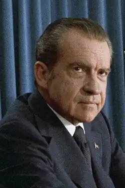 - ^ "Richard Nixon Presidential Library and Museum - On August 7, 1974, President Nixon informed his family on his intention to resign the Presidency of the United States. This photograph was taken on August 7, 1974, in the Solarium room at the White House. | Facebook". www.facebook.com.