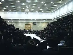 A Tish, also tische (Yiddish: טיש, lit.'table', pl. טישן, tischn) is a Shabbat or holiday gathering for Hasidic Jews around their Rabbi or "Rebbe". In Chabad, a tische is called hitva'adut (התועדות). It may consist of speeches on Torah subjects, singing of melodies known as niggunim (singular niggun) and zemirot ("hymns"), with refreshments being served. Hasidim see it as a moment of great holiness.