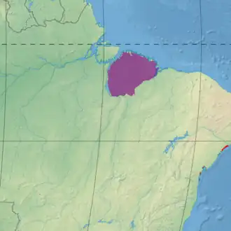 The Tocantins–Araguaia–Maranhão moist forests ecoregion is the most eastern of the Amazon region. It covers the east of the state of Pará and the north of Maranhão. The main cities are Belém, Paragominas and Bragança.[1] Its western border is the Tocantins River, a tributary of the Amazon River. It is bordered by the mouth of the Amazon to the northwest and the Atlantic Ocean to the northeast. The southern border is defined by the Mearim River.[2] To the east it is bounded by the Pindaré River and the Baía de São Marcos.[1]
