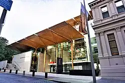 The exhibition expanded outside the gallery with installations in Britomart in Auckland's CBD.[1] These included the digital installation, SCOUT: Wawata Hōhonu (2020) by Lyonel Grant and Tim Gruchy.[2] The installation work, Te Hau Whakaroa (2020) by Charlotte Graham and a large scale permanent mural by Shane Cotton entitled Maunga. It is located on the side of the Excelsior House near the back of the Britomart Transport Centre.[4]